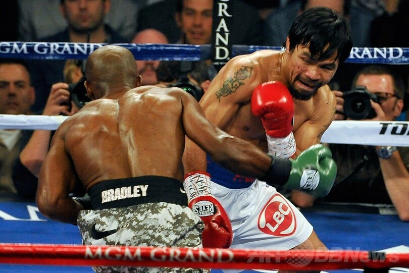 【4月13日 AFP】ボクシング、WBO世界ウェルター級タイトルマッチ12回戦が12日、米ネバダ(Nevada)州ラスベガス(Las Vegas)のMGMグランド・ガーデン・アリーナ(MGM Grand Garden Arena)で行われ、マニー・パッキャオ(Manny Pacquiao、フィリピン)が判定の末3-0(118-110、116-112、116-112)でティモシー・ブラッドリー(Timothy Bradley、米国)を下し、王座を獲得した。