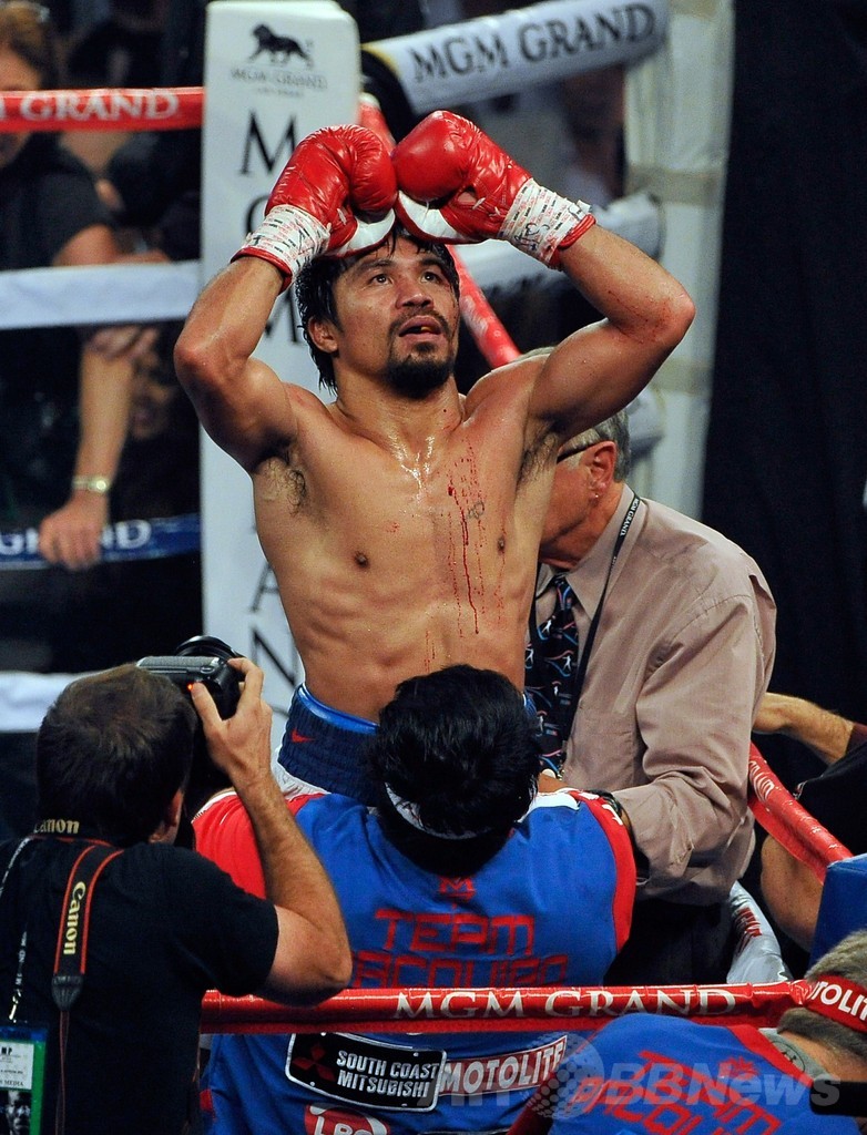 【4月13日 AFP】ボクシング、WBO世界ウェルター級タイトルマッチ12回戦が12日、米ネバダ(Nevada)州ラスベガス(Las Vegas)のMGMグランド・ガーデン・アリーナ(MGM Grand Garden Arena)で行われ、マニー・パッキャオ(Manny Pacquiao、フィリピン)が判定の末3-0(118-110、116-112、116-112)でティモシー・ブラッドリー(Timothy Bradley、米国)を下し、王座を獲得した。