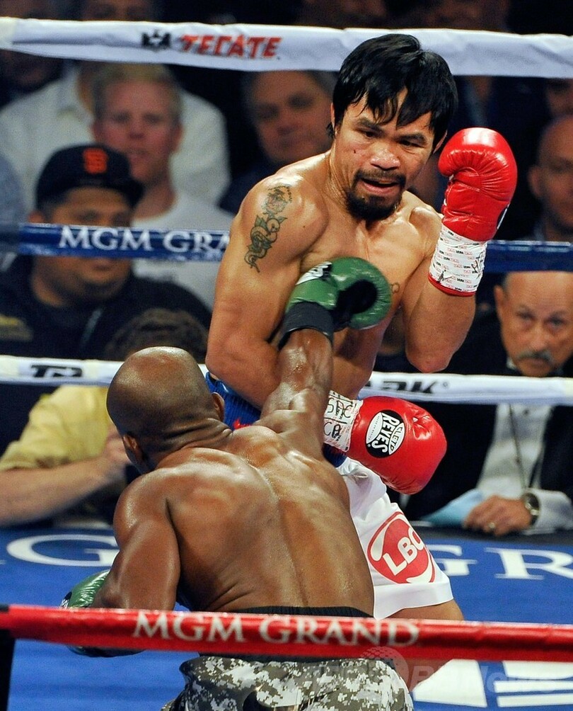 【4月13日 AFP】ボクシング、WBO世界ウェルター級タイトルマッチ12回戦が12日、米ネバダ(Nevada)州ラスベガス(Las Vegas)のMGMグランド・ガーデン・アリーナ(MGM Grand Garden Arena)で行われ、マニー・パッキャオ(Manny Pacquiao、フィリピン)が判定の末3-0(118-110、116-112、116-112)でティモシー・ブラッドリー(Timothy Bradley、米国)を下し、王座を獲得した。