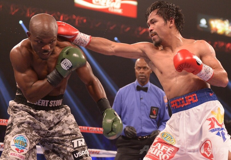 【4月13日 AFP】ボクシング、WBO世界ウェルター級タイトルマッチ12回戦が12日、米ネバダ(Nevada)州ラスベガス(Las Vegas)のMGMグランド・ガーデン・アリーナ(MGM Grand Garden Arena)で行われ、マニー・パッキャオ(Manny Pacquiao、フィリピン)が判定の末3-0(118-110、116-112、116-112)でティモシー・ブラッドリー(Timothy Bradley、米国)を下し、王座を獲得した。