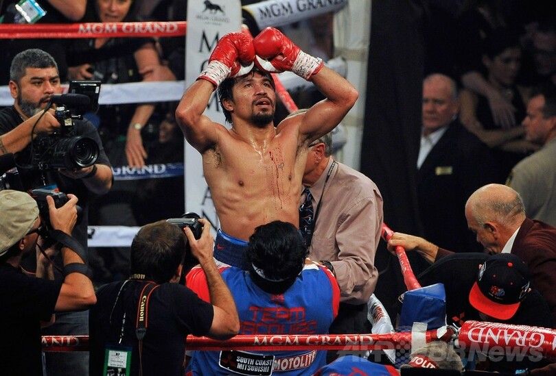 【4月13日 AFP】ボクシング、WBO世界ウェルター級タイトルマッチ12回戦が12日、米ネバダ(Nevada)州ラスベガス(Las Vegas)のMGMグランド・ガーデン・アリーナ(MGM Grand Garden Arena)で行われ、マニー・パッキャオ(Manny Pacquiao、フィリピン)が判定の末3-0(118-110、116-112、116-112)でティモシー・ブラッドリー(Timothy Bradley、米国)を下し、王座を獲得した。