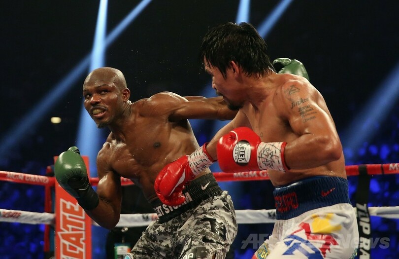 【4月13日 AFP】ボクシング、WBO世界ウェルター級タイトルマッチ12回戦が12日、米ネバダ(Nevada)州ラスベガス(Las Vegas)のMGMグランド・ガーデン・アリーナ(MGM Grand Garden Arena)で行われ、マニー・パッキャオ(Manny Pacquiao、フィリピン)が判定の末3-0(118-110、116-112、116-112)でティモシー・ブラッドリー(Timothy Bradley、米国)を下し、王座を獲得した。