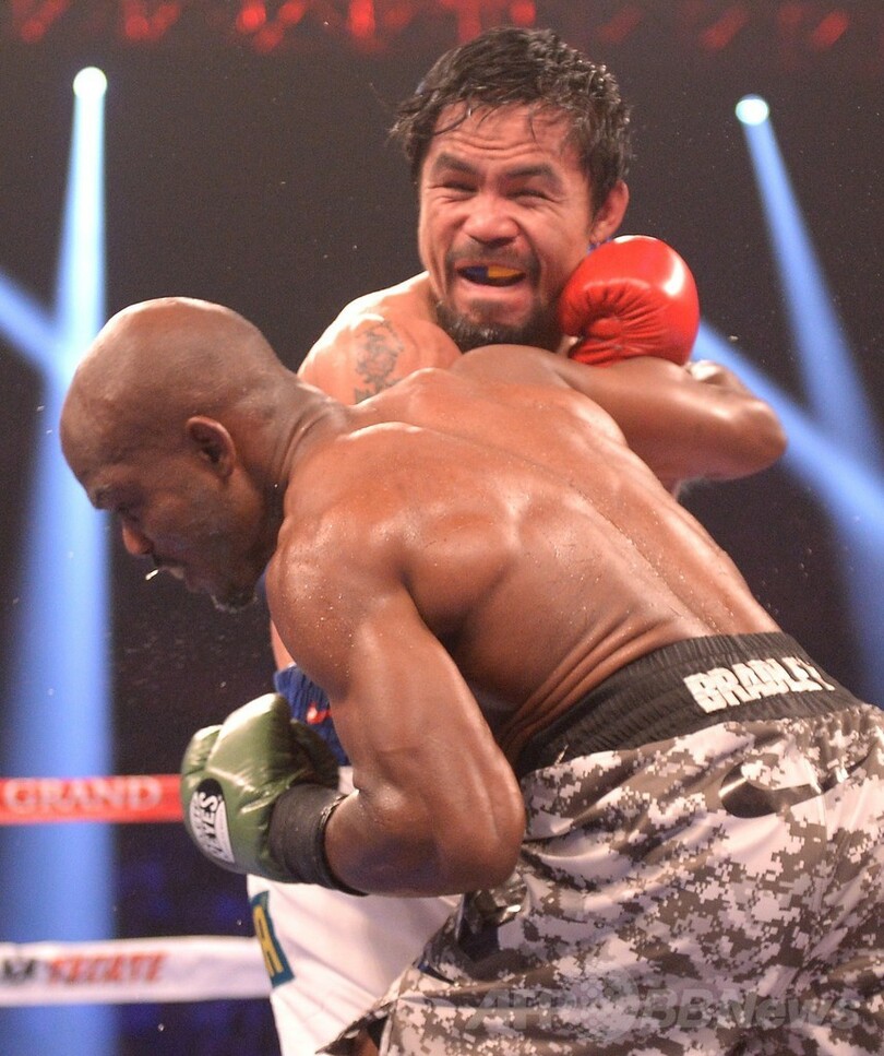 【4月13日 AFP】ボクシング、WBO世界ウェルター級タイトルマッチ12回戦が12日、米ネバダ(Nevada)州ラスベガス(Las Vegas)のMGMグランド・ガーデン・アリーナ(MGM Grand Garden Arena)で行われ、マニー・パッキャオ(Manny Pacquiao、フィリピン)が判定の末3-0(118-110、116-112、116-112)でティモシー・ブラッドリー(Timothy Bradley、米国)を下し、王座を獲得した。