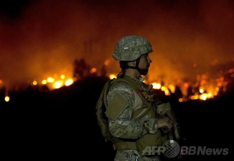 同市近郊の森で12日午後に発生した山火事は、強風にあおられて人口27万人の同市にまで達し、家屋500戸が全焼。当局によると、少なくとも3人が重傷、数百人が軽傷を負った。