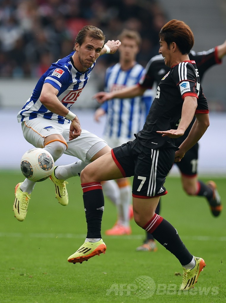 ヘルタは、前半終了間際にザンドロ・ヴァーグナー(Sandro Wagner)のヘディングで1点を返すが、なんとしても勝ち点を手にしたいレバークーゼンはそれ以上の失点を許さず、前日の試合でニュルンベルク(1. FC Nuremberg)に1-4の快勝を収めていたVfLボルフスブルク(VfL Wolfsburg)を抜き去り、4位の座を奪還した。(c)AFP/Mark Rodden