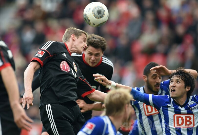 ヘルタは、前半終了間際にザンドロ・ヴァーグナー(Sandro Wagner)のヘディングで1点を返すが、なんとしても勝ち点を手にしたいレバークーゼンはそれ以上の失点を許さず、前日の試合でニュルンベルク(1. FC Nuremberg)に1-4の快勝を収めていたVfLボルフスブルク(VfL Wolfsburg)を抜き去り、4位の座を奪還した。(c)AFP/Mark Rodden