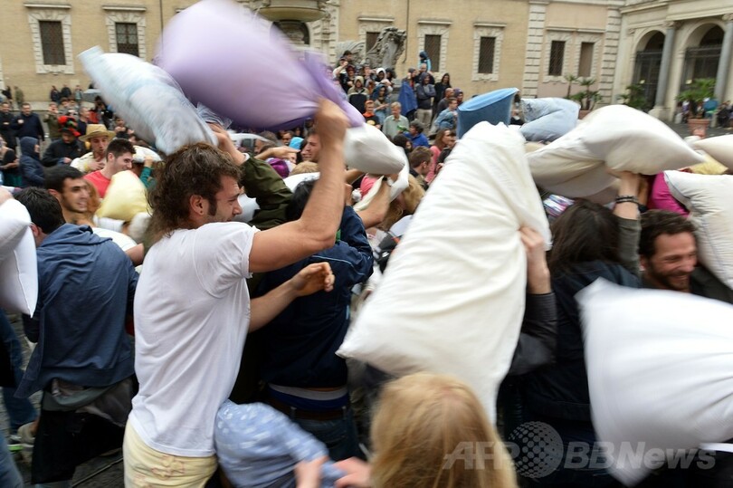 ニュース ライフ スパイダーマンも参戦?ローマで「枕叩き」イベント開催 2014年4月14日 20:33 発信地:ローマ/イタリア [ ヨーロッパ イタリア ] このニュースをシェア ‹ › ❮ 5/9 ❯ イタリア・ローマ(Rome)で開催された「ピローファイト(Pillow Fight)」に参加した人々(2014年4月13日撮影)。(c)AFP/ALBERTO PIZZOLI 画像作成中 ! 【4月14日 AFP】イタリア・ローマ(Rome)で13日、枕を手に相手と叩き合う「ピローファイト(Pillow Fight)」のイベントが行われ、大勢の人々が参加した。(c)AFP ライフ 一覧へ> メディア・報道関係・法人の方向け 写真・動画 購入のお問合せ>