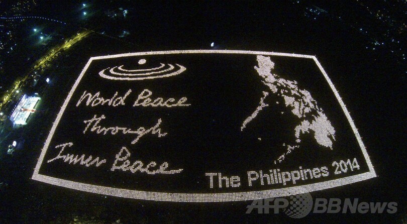 【4月15日 AFP】フィリピン中部パナイ(Panay)島のイロイロ(Iloilo)で14日、数百人のボランティアが集まり、ろうそくの炎で巨大な画像を浮かび上がらせるギネス世界記録(Guinness World Records)に挑戦。暗闇のなか5万6680本のろうそくを使って巨大なフィリピン地図を地上に描いた。