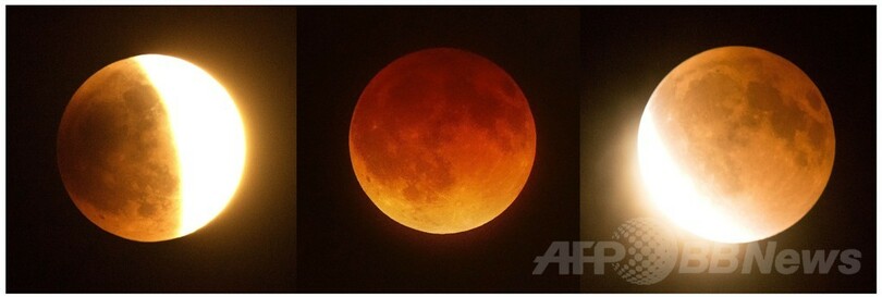 ニュース 環境・科学 皆既月食の「赤い月」、米大陸で観測 2014年4月15日 19:27 発信地:その他 [ 例外 その他 ] このニュースをシェア ‹ › ❮ 2/10 ❯ 米ロサンゼルス(Los Angeles)郊外で観測された皆既月食の合成写真(2014年4月15日撮影)。(c)AFP/JOE KLAMAR 画像作成中 ! 【4月15日 AFP】北米から南米までの米大陸では15日、月が赤く見える皆既月食が観測された。「血の月」とも呼ばれる今回のような皆既月食は今年と来年の2年間で計4回観測されるという。(c)AFP 環境・科学 一覧へ> メディア・報道関係・法人の方向け 写真・動画 購入のお問合せ>