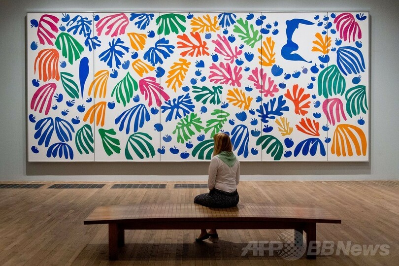 同展では、マティスが1936年から54年にかけて制作した約120点の切り紙絵を展示している。6月3日には一部の映画館で、同展覧会の舞台裏やマティスの生涯を追った映像「マティス・ライブ(Matisse Live)」が放送される予定。(c)AFP