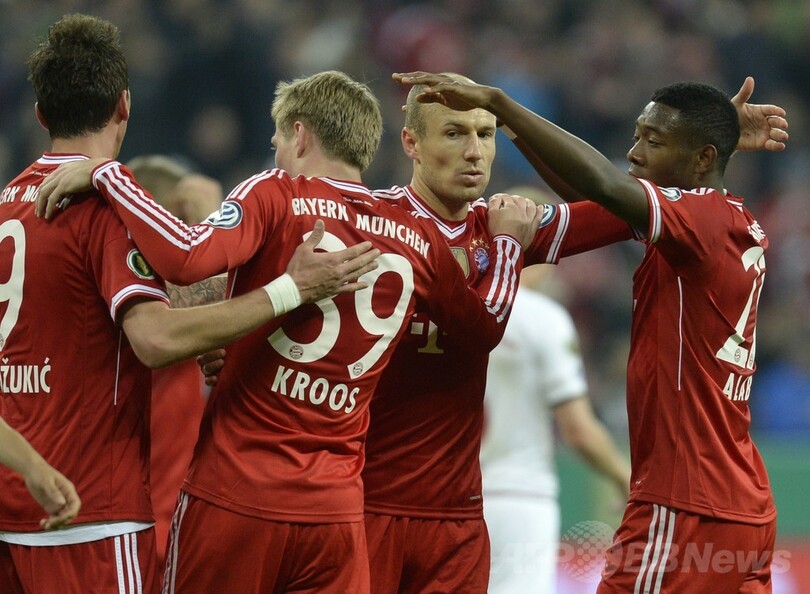 バイエルンはバスティアン・シュバインシュタイガー(Bastian Schweinsteiger)、トニ・クロース(Toni Kroos)、トマス・ミュラー(Thomas Mueller)、マリオ・マンジュキッチ(Mario Mandzukic)、マリオ・ゲッツェ(Mario Goetze)が得点を決めている。