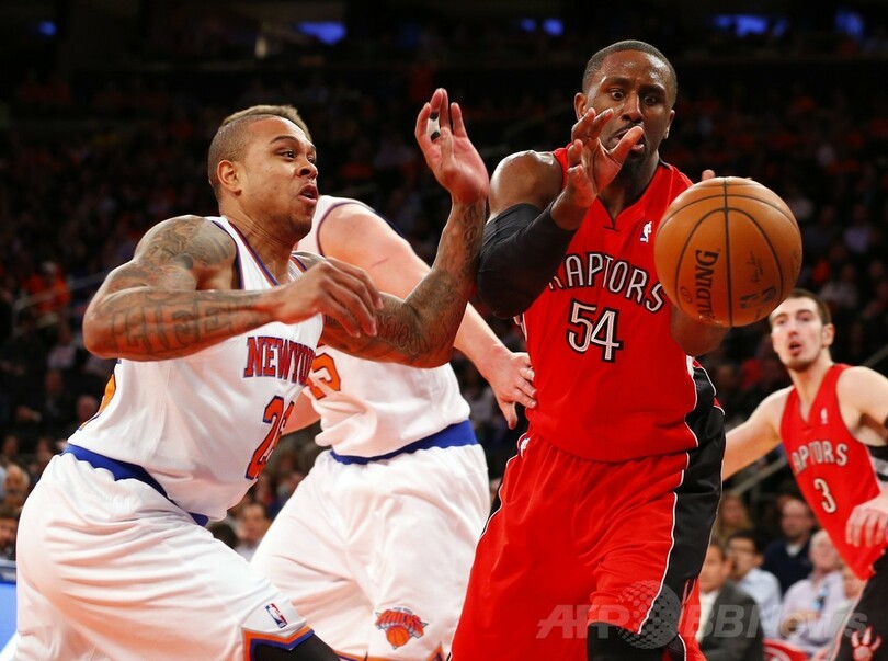 【4月17日 AFP】13-14NBAは16日、各地で試合が行われ、トロント・ラプターズ(Toronto Raptors)は92-95でニューヨーク・ニックス(New York Knicks)に敗れたものの、イースタンカンファレンスの第3シードを確保した。
