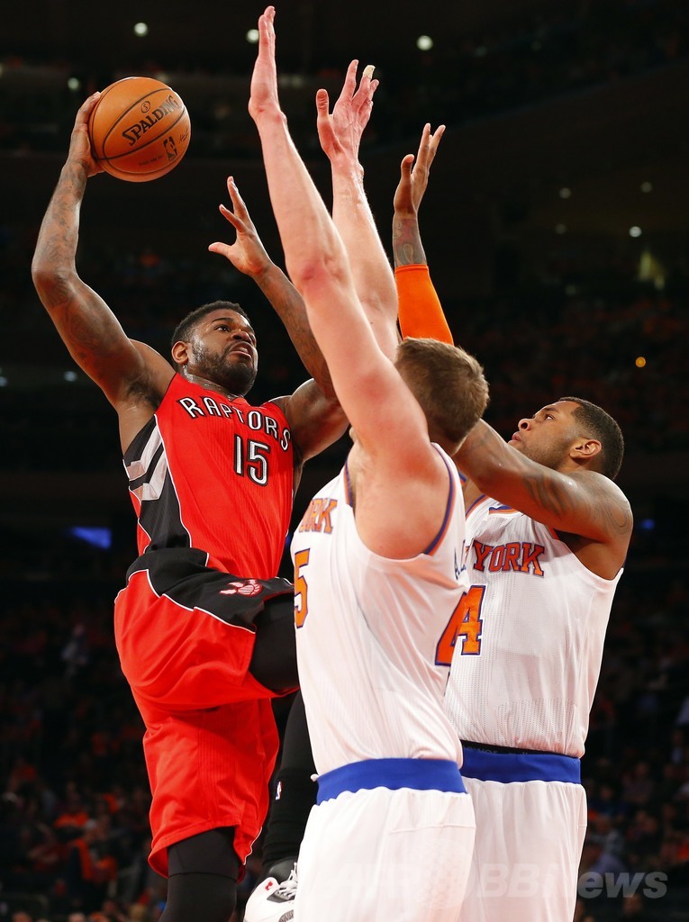 【4月17日 AFP】13-14NBAは16日、各地で試合が行われ、トロント・ラプターズ(Toronto Raptors)は92-95でニューヨーク・ニックス(New York Knicks)に敗れたものの、イースタンカンファレンスの第3シードを確保した。
