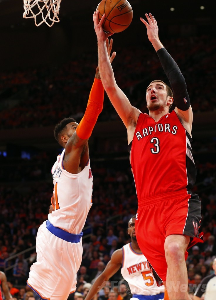 【4月17日 AFP】13-14NBAは16日、各地で試合が行われ、トロント・ラプターズ(Toronto Raptors)は92-95でニューヨーク・ニックス(New York Knicks)に敗れたものの、イースタンカンファレンスの第3シードを確保した。
