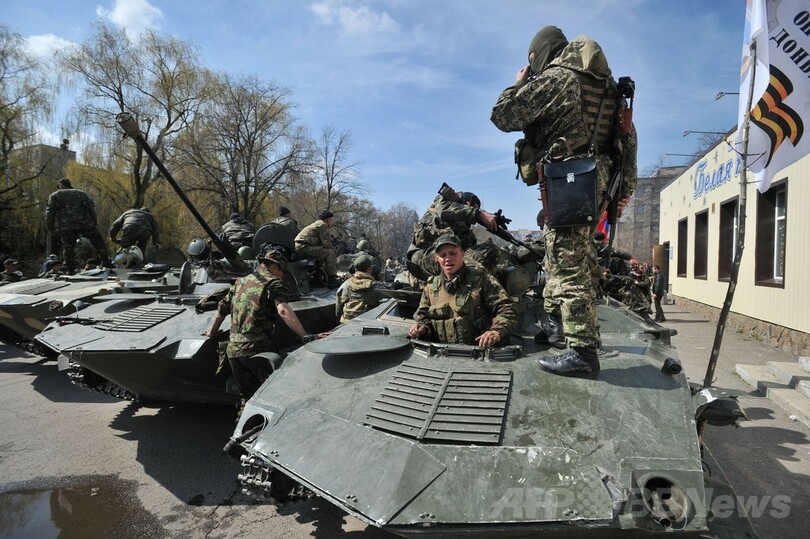 【4月16日 AFP】ウクライナ国防省は15日、分離派勢力の鎮圧のために東部の町クラマトルスク(Kramatorsk)に派遣された同国軍の装甲車6両が、親ロシア派の武装集団に奪取されたと発表した。同国軍が東部で開始した「対テロ作戦」が裏目に出た形だ。