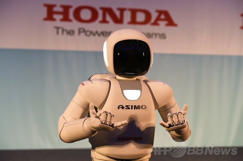 2000年に第1号が発表されたアシモは、小さな宇宙飛行士に似た姿の人型ロボットで、「Advanced Step in Innovative Mobility(新しい時代へ進化した革新的モビリティー)」の頭文字を取って名付けられた。移動が困難な人の介助を想定して研究開発が進められており、開発陣は、いつの日かアシモが、おやつを取ってきたり電気を消したりといった日常面で高齢者を支援できるようになると考えている。(c)AFP