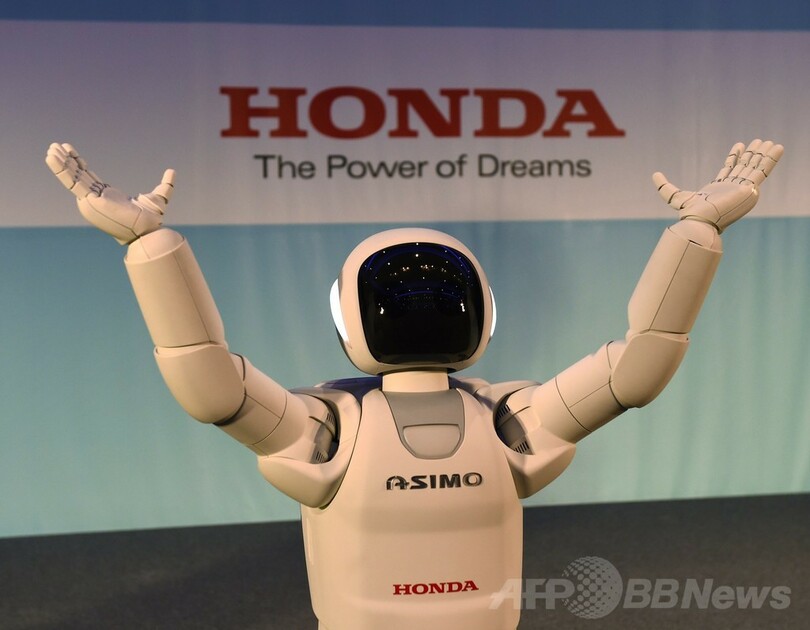 2000年に第1号が発表されたアシモは、小さな宇宙飛行士に似た姿の人型ロボットで、「Advanced Step in Innovative Mobility(新しい時代へ進化した革新的モビリティー)」の頭文字を取って名付けられた。移動が困難な人の介助を想定して研究開発が進められており、開発陣は、いつの日かアシモが、おやつを取ってきたり電気を消したりといった日常面で高齢者を支援できるようになると考えている。(c)AFP