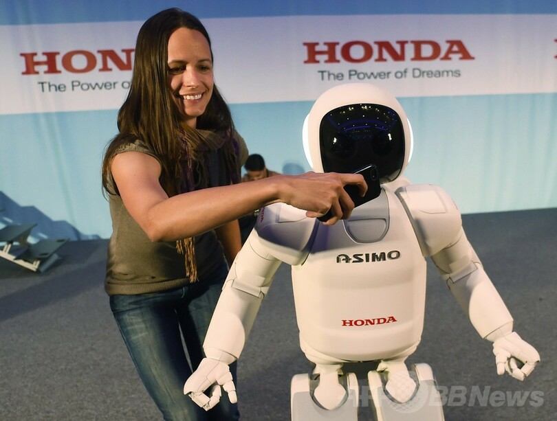 2000年に第1号が発表されたアシモは、小さな宇宙飛行士に似た姿の人型ロボットで、「Advanced Step in Innovative Mobility(新しい時代へ進化した革新的モビリティー)」の頭文字を取って名付けられた。移動が困難な人の介助を想定して研究開発が進められており、開発陣は、いつの日かアシモが、おやつを取ってきたり電気を消したりといった日常面で高齢者を支援できるようになると考えている。(c)AFP