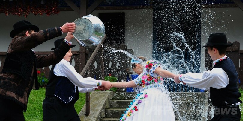 ニュース ライフ こぼれ話 水を浴びせられる少女たち、復活祭の伝統 ハンガリー 2014年4月19日 12:15 発信地:カロチャ/ハンガリー [ ヨーロッパ ハンガリー ] このニュースをシェア ‹ › ❮ 2/11 ❯ ハンガリー首都ブダペスト(Budapest)から約100キロ南方に位置するカロチャ(Kalocsa)で、少年たちから水を浴びせられる少女(2014年4月17日撮影)。(c)AFP/ATTILA KISBENEDEK 画像作成中 ! 【4月19日 AFP】ハンガリー首都ブダペスト(Budapest)から約100キロ南方に位置するカロチャ(Kalocsa)で17日、20日に祝われるイースター(復活祭)に向けて地元のフォークダンスグループの子どもたちがリハーサルを行った。マチョー(Matyo)民族の男性たちが子孫繁栄を祈って女性に水を浴びせるこの行事は、ハンガリー南部において2世紀から続いている。(c)AFP ライフ 一覧へ> メディア・報道関係・法人の方向け 写真・動画 購入のお問合せ>