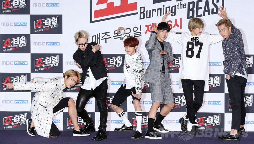 【4月18日 STARNEWS】韓国・ソウル(Seoul)のシネマコンプレックス(複合映画館)「CGV」汝矣島(Yeouido)店で10日、韓国文化放送(MBC)系列のケーブルテレビ「MBC every1」で放送されるバラエティー番組「SHOWTIME Burning the BEAST」の制作発表会が開かれ、アイドルグループ「ビースト(BEAST)」が出席した。