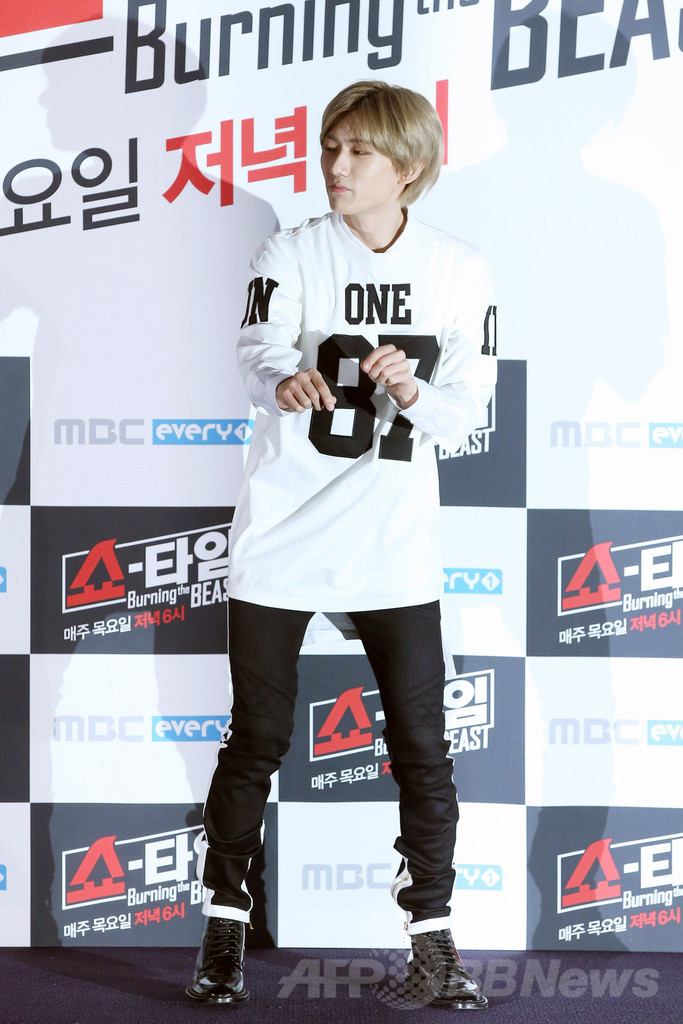 【4月18日 STARNEWS】韓国・ソウル(Seoul)のシネマコンプレックス(複合映画館)「CGV」汝矣島(Yeouido)店で10日、韓国文化放送(MBC)系列のケーブルテレビ「MBC every1」で放送されるバラエティー番組「SHOWTIME Burning the BEAST」の制作発表会が開かれ、アイドルグループ「ビースト(BEAST)」が出席した。