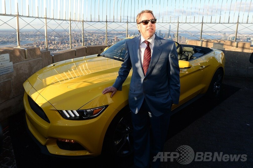 【4月18日 AFP】米自動車大手フォード・モーター(Ford Morter)は16日、名車「マスタング(Ford Mustang)」誕生50周年を記念し、ニューヨーク(New York)のエンパイアステートビル(Empire State Building)86階の展望台に新型の「マスタング・コンバーチブル2015年モデル(2015 Mustang Convertible)」を展示した。
