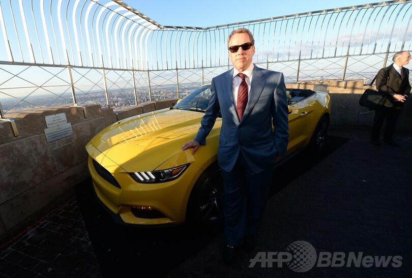 【4月18日 AFP】米自動車大手フォード・モーター(Ford Morter)は16日、名車「マスタング(Ford Mustang)」誕生50周年を記念し、ニューヨーク(New York)のエンパイアステートビル(Empire State Building)86階の展望台に新型の「マスタング・コンバーチブル2015年モデル(2015 Mustang Convertible)」を展示した。