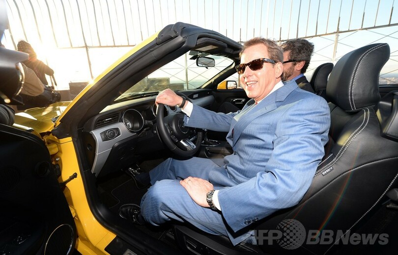【4月18日 AFP】米自動車大手フォード・モーター(Ford Morter)は16日、名車「マスタング(Ford Mustang)」誕生50周年を記念し、ニューヨーク(New York)のエンパイアステートビル(Empire State Building)86階の展望台に新型の「マスタング・コンバーチブル2015年モデル(2015 Mustang Convertible)」を展示した。