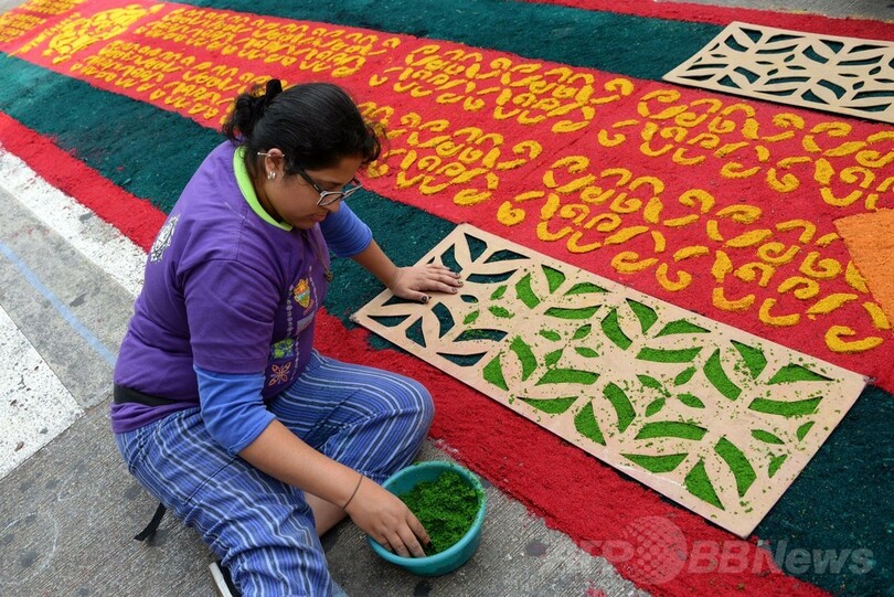 【4月18日 AFP】中米グアテマラの首都グアテマラ市(Guatemala City)で17日、カトリック教徒たちが全長2000メートル超の「世界最長のおがくずのカーペット」を完成させ、昨年打ち立てたギネス世界記録(Guinness World Records)を見事更新した。