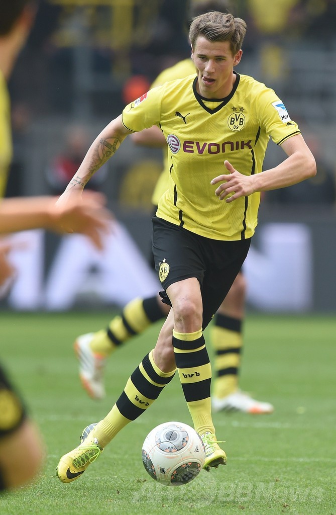 ドルトムントはこれで、来季の欧州チャンピオンズリーグ(UEFA Champions League 2014-15)に本戦から出場できる3位以内を確定させている。(c)AFP/Ryland JAMES