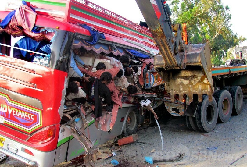 現場はカラチから425キロ北の地点。警察によると、トレーラーの運転手は負傷し、バスの運転手は事故現場で死亡した。トレーラーの運転手以外の死傷者はすべてバスに乗っていた。