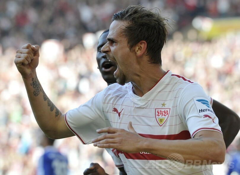 マルティン・ハルニク(Martin Harnik)の2ゴールとカカウ(Cacau)の得点で3点をリードしたシュツットガルトは、その後のシャルケの反撃をアダム・シャライ(Adam Szalai)の1得点に抑えた。(c)AFP