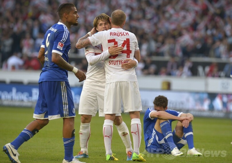 マルティン・ハルニク(Martin Harnik)の2ゴールとカカウ(Cacau)の得点で3点をリードしたシュツットガルトは、その後のシャルケの反撃をアダム・シャライ(Adam Szalai)の1得点に抑えた。(c)AFP