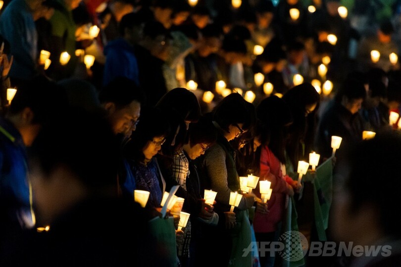 ニュース 社会 韓国旅客船沈没、高校生らの無事を祈る集会 安山市 2014年4月23日 11:33 発信地:安山/韓国 [ 韓国・北朝鮮 韓国 ] このニュースをシェア ‹ › ❮ 5/19 ❯ 韓国・安山(Ansan)市で開催された集会で、ろうそくを手に、事故で行方不明になった人々の無事を祈る参加者ら(2014年4月22日撮影)。(c)AFP/KIM DOO-HO 画像作成中 ! 【4月23日 AFP】韓国・安山(Ansan)市の中心部で22日夜、同国南西部・珍島(Jindo)沖で16日に起きた旅客船セウォル(Sewol)号の沈没事故で行方不明になっている高校生らの無事を祈る集会が行われた。これまでに確認された事故による犠牲者は120人を超えている。(c)AFP 社会 一覧へ> メディア・報道関係・法人の方向け 写真・動画 購入のお問合せ>