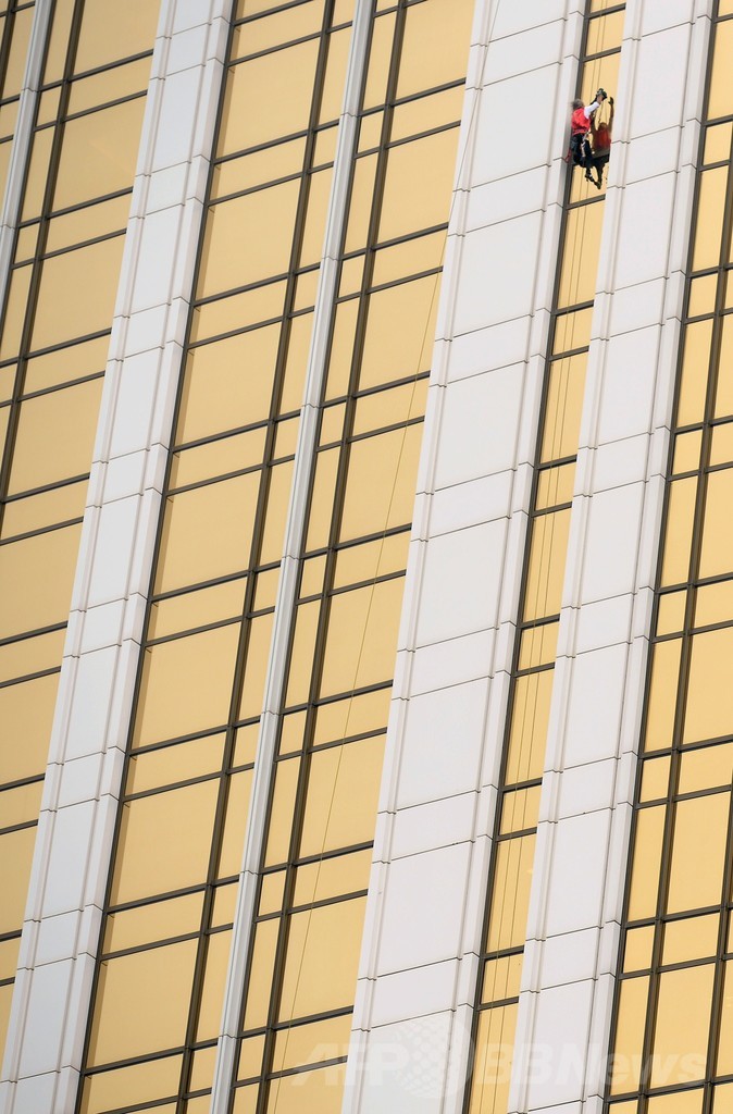 ロベールさんはこれまでにも、世界一の超高層ビル、アラブ首長国連邦(UAE)ドバイ(Dubai)の「ブルジュ・ハリファ(Burj Khalifa)」(828メートル)やマレーシア・クアラルンプール(Kuala Lumpur)の「ペトロナス・ツイン・タワー(Petronas Twin Towers)」、米シカゴ(Chicago)の「ウィリスタワー(Willis Tower、旧シアーズタワー、Sears Tower)」、上海(Shanghai)の「金茂大厦(ジンマオタワー、Jin Mao Tower)」など、世界各地で100以上の高層ビルに登っている。(c)AFP