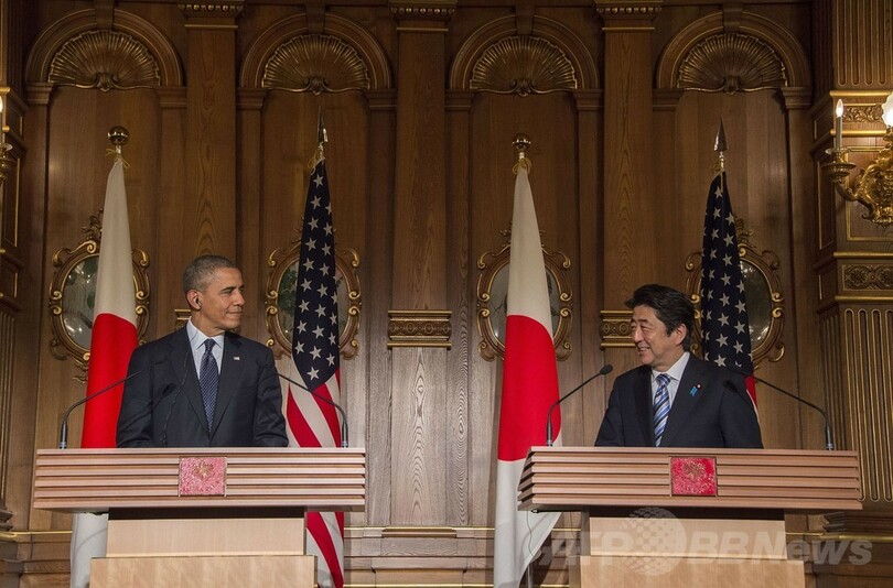 【4月24日 AFP】来日中のバラク・オバマ(Barack Obama)米大統領は24日、迎賓館で安倍晋三(Shinzo Abe)首相との会談後に記者会見し、米国の日本に対する防衛義務を定めた日米安全保障条約第5条の適用対象には、尖閣諸島(Senkaku Islands)も含まれると明言した。