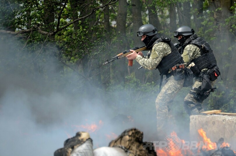 【4月24日 AFP】ウクライナ軍は24日、親ロシア派が掌握している同国東部のスラビャンスク(Slavyansk)に装甲車やヘリコプターを投入し、同派の武装集団らを排除する作戦を再開した。現地で取材に当たっているAFP記者が伝えた。