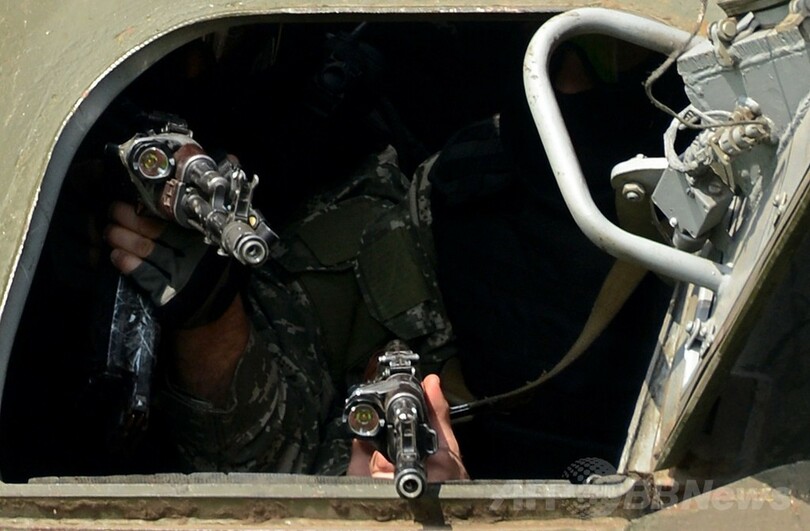 【4月24日 AFP】ウクライナ軍は24日、親ロシア派が掌握している同国東部のスラビャンスク(Slavyansk)に装甲車やヘリコプターを投入し、同派の武装集団らを排除する作戦を再開した。現地で取材に当たっているAFP記者が伝えた。