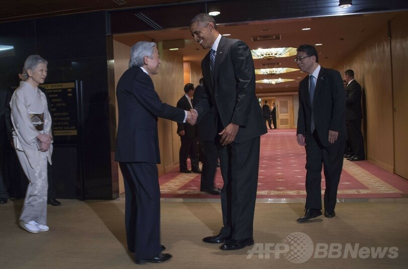 ニュース 政治・経済 オバマ大統領、3日間の訪日を終了 次の訪問国 韓国へ 2014年4月25日 11:35 発信地:東京 [ アジア・オセアニア 東京 ] このニュースをシェア ‹ › ❮ 7/11 ❯ 都内のホテルオークラ(Hotel Okura)で、国賓としての訪日日程を終え韓国へ向かうバラク・オバマ(Barack Obama)米大統領(右から2人目)と握手する天皇陛下(2014年4月25日撮影)。(c)AFP/Jim WATSON 画像作成中 ! 【4月25日 AFP】国賓として来日した米国のバラク・オバマ(Barack Obama)大統領は25日、3日間の訪問日程を終え、羽田空港(Haneda Airport)から韓国に向かった。(c)AFP 政治・経済 一覧へ> メディア・報道関係・法人の方向け 写真・動画 購入のお問合せ>