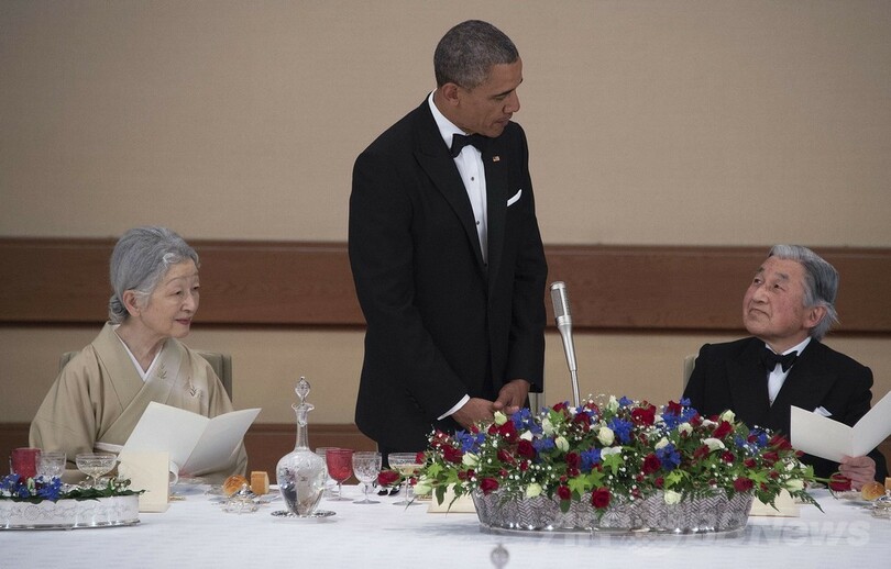 ニュース ライフ オバマ米大統領を歓迎、宮中晩さん会 2014年4月25日 7:12 発信地:東京 [ アジア・オセアニア 東京 ] このニュースをシェア ‹ › ❮ 4/11 ❯ 皇居で開かれた宮中晩さん会でスピーチするバラク・オバマ(Barack Obama)米大統領(2014年4月24日撮影)。(c)AFP/POOL/Jim WATSON 画像作成中 ! 【4月25日 AFP】国賓として来日したバラク・オバマ(Barack Obama)米大統領を歓迎する天皇、皇后両陛下主催の宮中晩さん会が24日、皇居で開かれた。(c)AFP ライフ 一覧へ> メディア・報道関係・法人の方向け 写真・動画 購入のお問合せ>