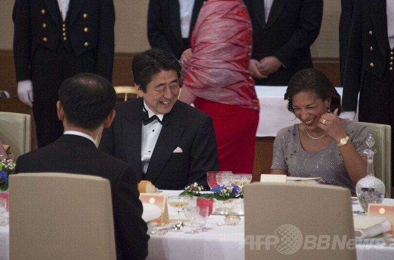 ニュース ライフ オバマ米大統領を歓迎、宮中晩さん会 2014年4月25日 7:12 発信地:東京 [ アジア・オセアニア 東京 ] このニュースをシェア ‹ › ❮ 11/11 ❯ 皇居で開かれた宮中晩さん会で、スーザン・ライス(Susan Rice)米大統領補佐官(国家安全保障担当)と会話する安倍晋三(Shinzo Abe)首相(2014年4月24日撮影)。(c)AFP/POOL/Jim WATSON 画像作成中 ! 【4月25日 AFP】国賓として来日したバラク・オバマ(Barack Obama)米大統領を歓迎する天皇、皇后両陛下主催の宮中晩さん会が24日、皇居で開かれた。(c)AFP ライフ 一覧へ> メディア・報道関係・法人の方向け 写真・動画 購入のお問合せ>