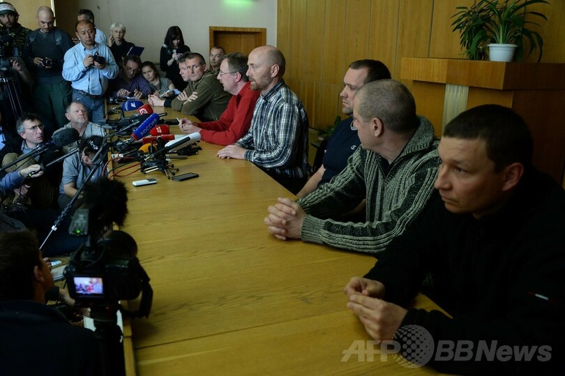 【4月28日 AFP】ウクライナ東部スラビャンスク(Slavyansk)の親ロシア派武装勢力は27日、拘束した欧州安保協力機構(OSCE)軍事監視団のメンバーらを「戦争捕虜」として記者会見に同席させた。
