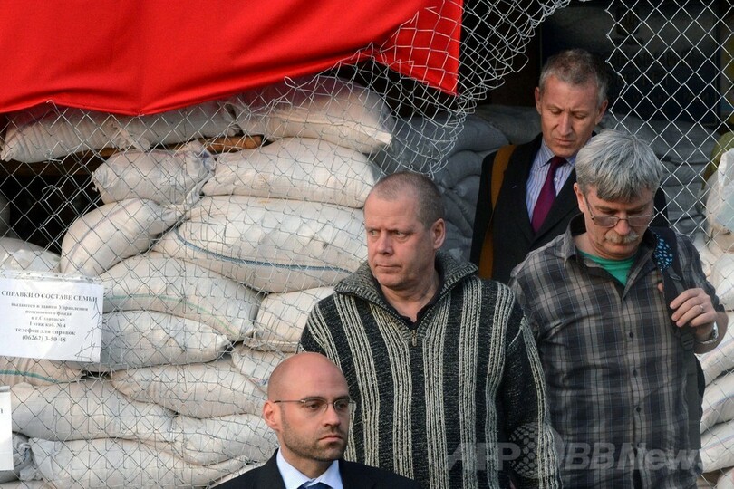 【4月28日 AFP】ウクライナ東部スラビャンスク(Slavyansk)の親ロシア派武装勢力は27日、拘束した欧州安保協力機構(OSCE)軍事監視団のメンバーらを「戦争捕虜」として記者会見に同席させた。