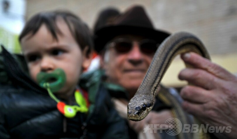 ニュース ライフ 「ヘビの聖人」が街を行進、伊コクッロの伝統祭 2014年5月2日 12:45 発信地:コクッロ/イタリア [ ヨーロッパ イタリア ] このニュースをシェア ‹ › ❮ 15/24 ❯ イタリア・アブルツォ(Abruzzo)州のコクッロ(Cocullo)で行われた伝統のヘビ祭りで、ヘビを手にする男性(2014年5月1日撮影)。(c)AFP/TIZIANA FABI 画像作成中 ! 【5月2日 AFP】イタリア・アブルツォ(Abruzzo)州のコクッロ(Cocullo)で1日、毎年恒例のヘビ祭りが行われ、ヘビに覆われた聖人の像が街を練り歩いた。(c)AFP ライフ 一覧へ> メディア・報道関係・法人の方向け 写真・動画 購入のお問合せ>
