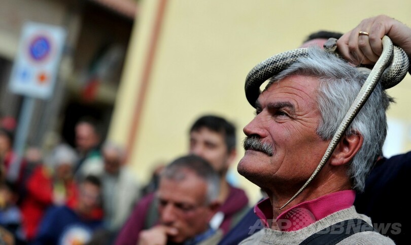 ニュース ライフ 「ヘビの聖人」が街を行進、伊コクッロの伝統祭 2014年5月2日 12:45 発信地:コクッロ/イタリア [ ヨーロッパ イタリア ] このニュースをシェア ‹ › ❮ 14/24 ❯ イタリア・アブルツォ(Abruzzo)州のコクッロ(Cocullo)で行われた伝統のヘビ祭りで、ヘビを手にする男性(2014年5月1日撮影)。(c)AFP/TIZIANA FABI 画像作成中 ! 【5月2日 AFP】イタリア・アブルツォ(Abruzzo)州のコクッロ(Cocullo)で1日、毎年恒例のヘビ祭りが行われ、ヘビに覆われた聖人の像が街を練り歩いた。(c)AFP ライフ 一覧へ> メディア・報道関係・法人の方向け 写真・動画 購入のお問合せ>