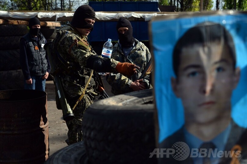 【5月2日 AFP】(写真追加)ウクライナ軍は2日、親ロシア派の武装集団が掌握する東部スラビャンスク(Slavyansk)の奪還作戦を開始した。しかし、ウクライナ暫定政権によると軍のヘリコプター2機が親ロシア派の携行式ロケット弾攻撃により撃墜され、兵士2人が死亡したという。
