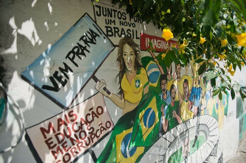 アーティストたちが描くグラフィティには、W杯に対する愛憎入り混じる強烈かつ複雑な市民感情が反映されている。