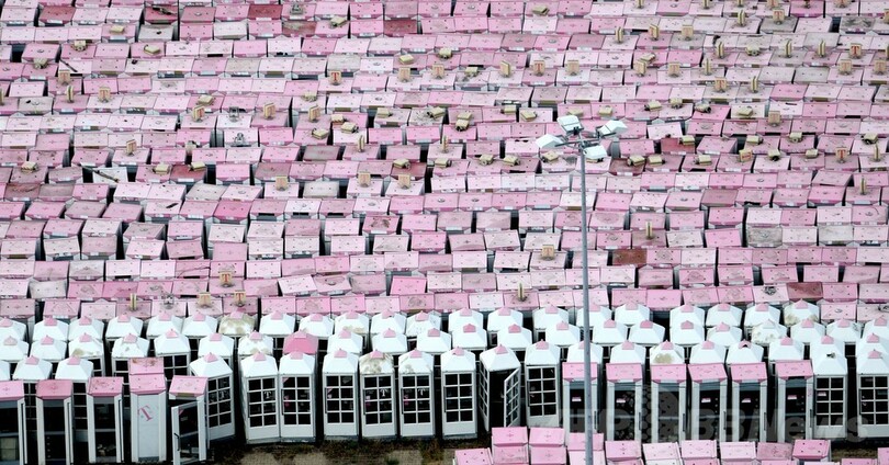 ずらり並んだ電話ボックス、撤去後の行き先は?