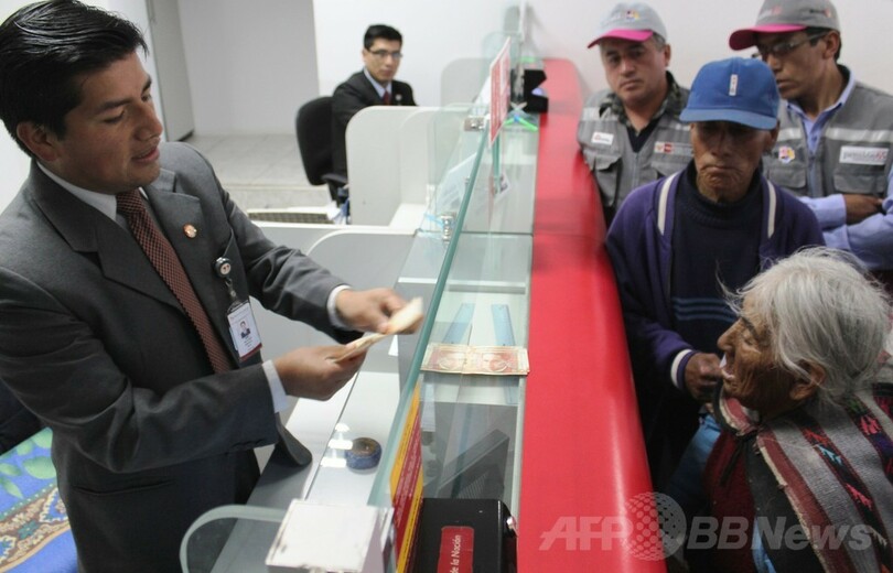 開発・社会包摂省によると、タイペ・メンドーサさんは若くして夫を亡くし、苦労して9人の子どもを育てたが、今も生きている子どもは3人だけ。年金受給者となったことで、今後は医療費が無料になるほか、毎月約250ソル(約9200円)を受け取ることができるという。(c)AFP