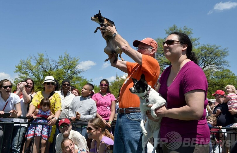 【5月4日 AFP】米ワシントンD.C.(Washington D.C.)で3日、毎年恒例の「ラン・オブ・ザ・チワワ(Run of the Chihuahuas)」が開催され、大勢のチワワの飼い主たちが着飾らせた自慢の愛犬を連れて参加した。同レースは5日のメキシコの祝日「シンコ・デ・マヨ(Cinco de Mayo)」を記念して行われている。(c)AFP